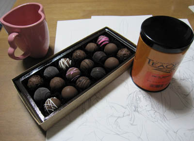 カナダからの土産が来ました。アイスワイン(日本で言う貴腐ワインのようなもの)とチョコと紅茶だった。これは勿論原稿のお供v そろそろ紅茶葉が切れるところだったのでグッドタイミングだ。それからメープルシロップ。…食いモンばっかだね(笑)