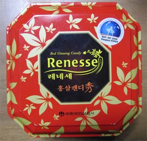 新型インフルエンザが我が家で猛威を振るう中、一人国外逃亡していたパソヲタ君が出張先の韓国から貰ってきた土産。朝鮮人参の飴だそうです。ええとね、養命酒を凝縮して飴にした感じ。甘いんだけど漢方っぽい風味。味はアレなのですが身体によさそうっス(笑)。スパークで、修羅場明けでお疲れの友人知人に一粒ずつお土産で配ろうかな。